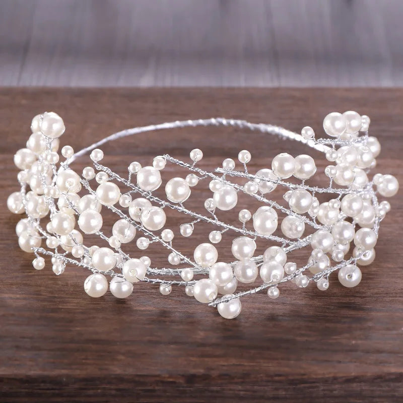 Design : couronne avec perles élégantes et détails métalliques