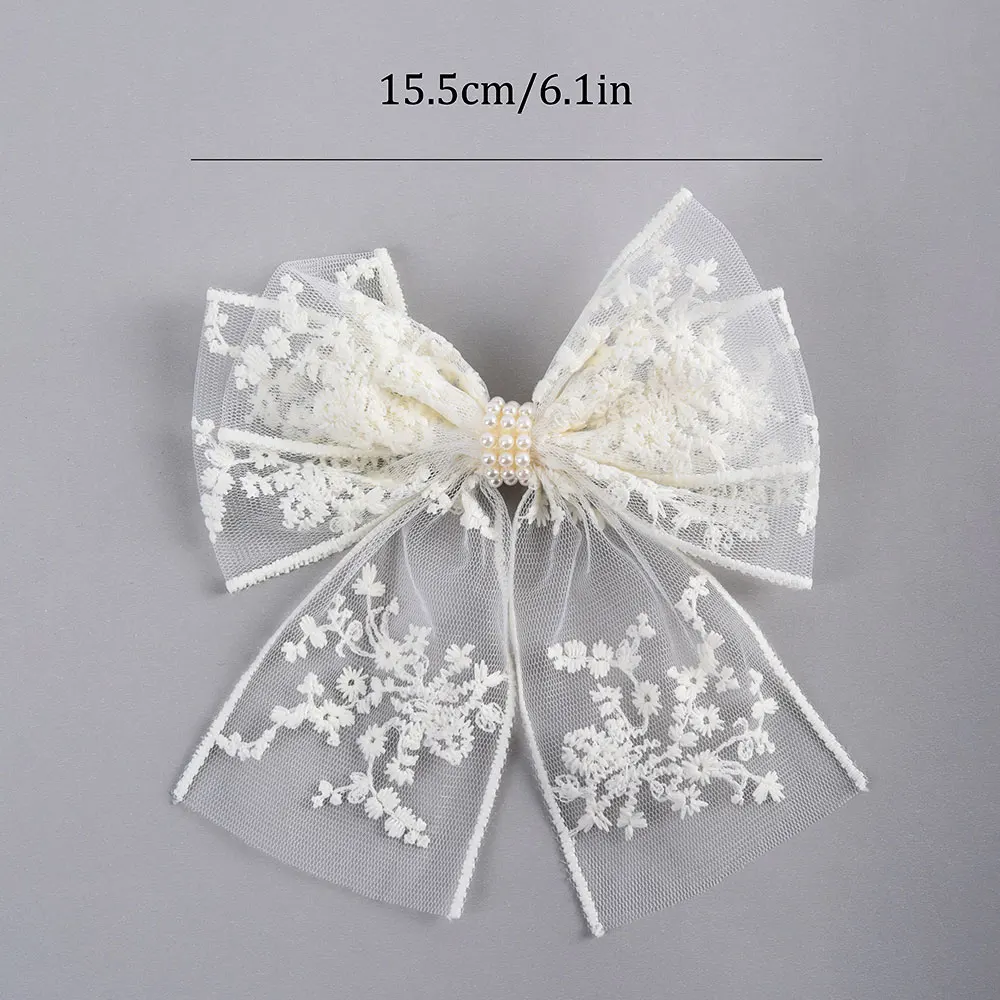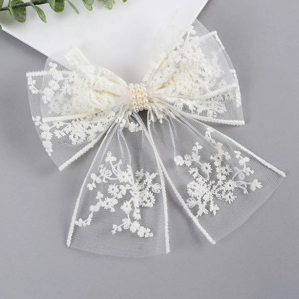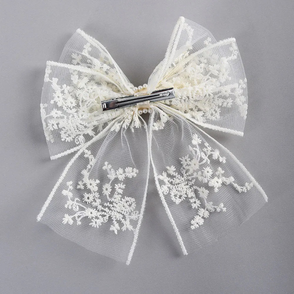 Korean White Lace Bow Hair Clip Embroidered Pearl Hairpin