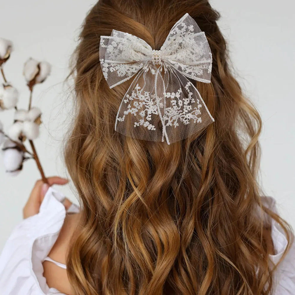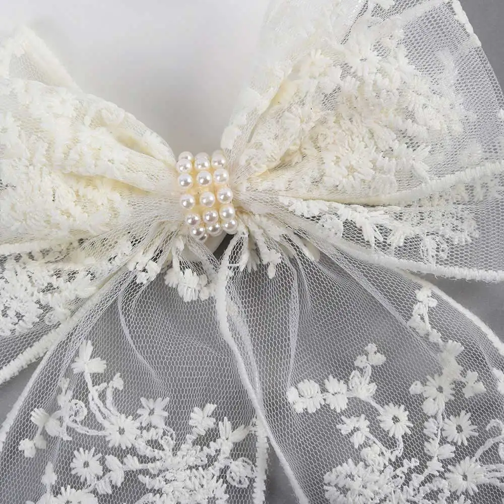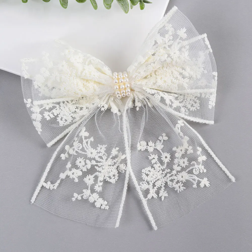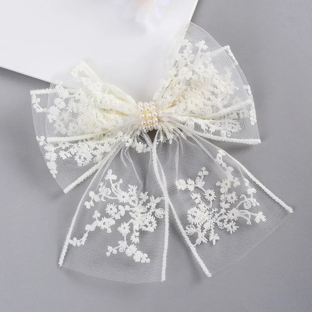 Korean White Lace Bow Hair Clip Embroidered Pearl Hairpin