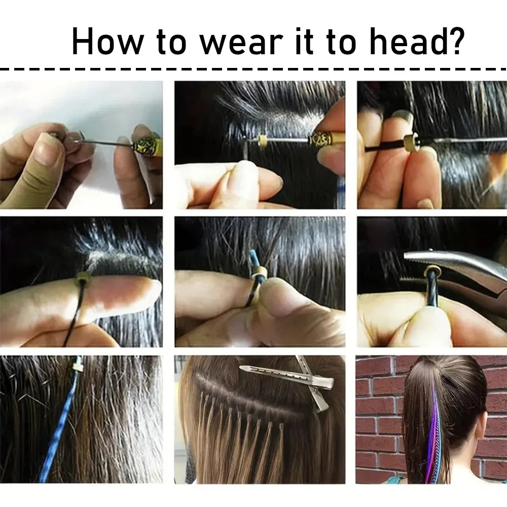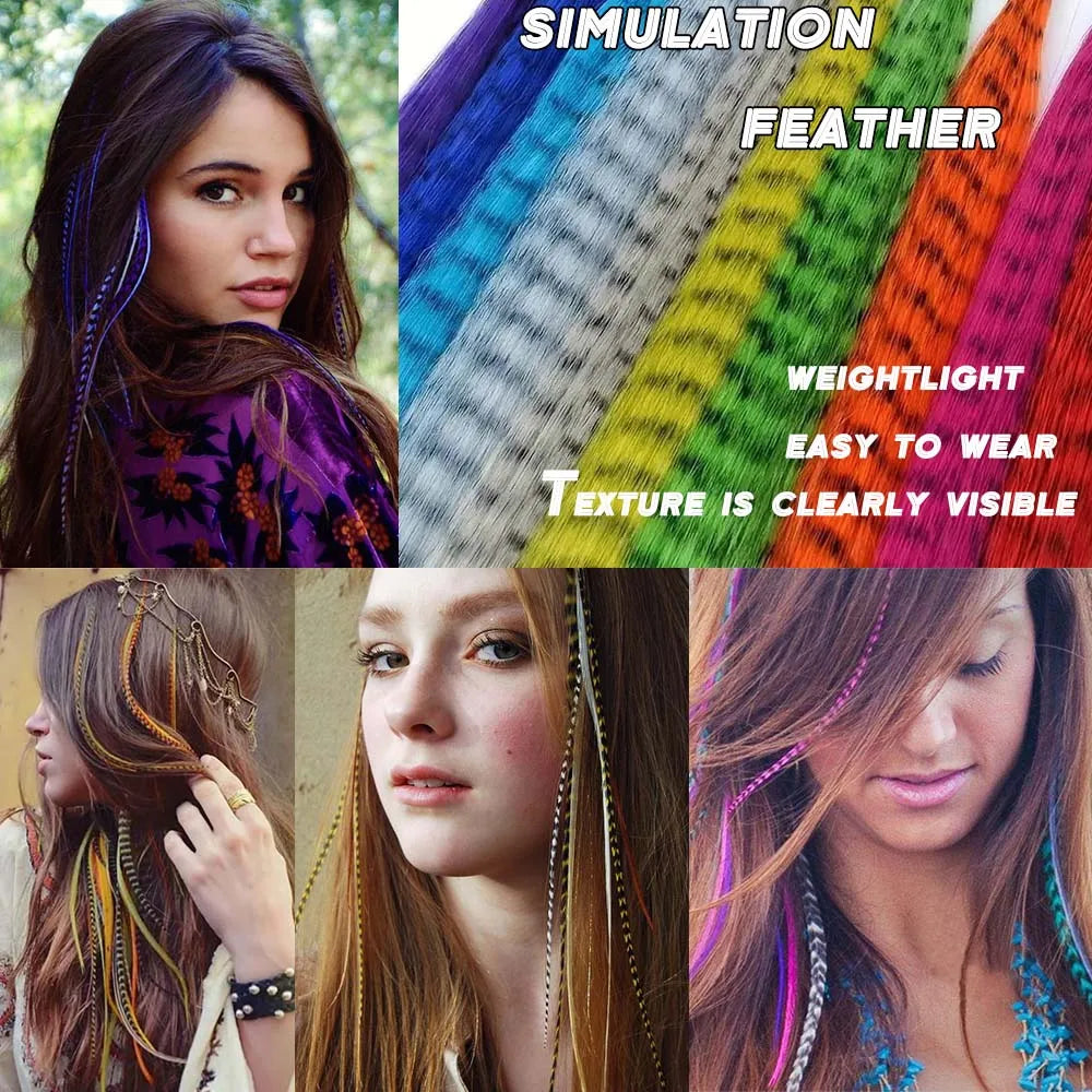16Synthetic Tip Faux Feather Hair Extensions Strands Heat