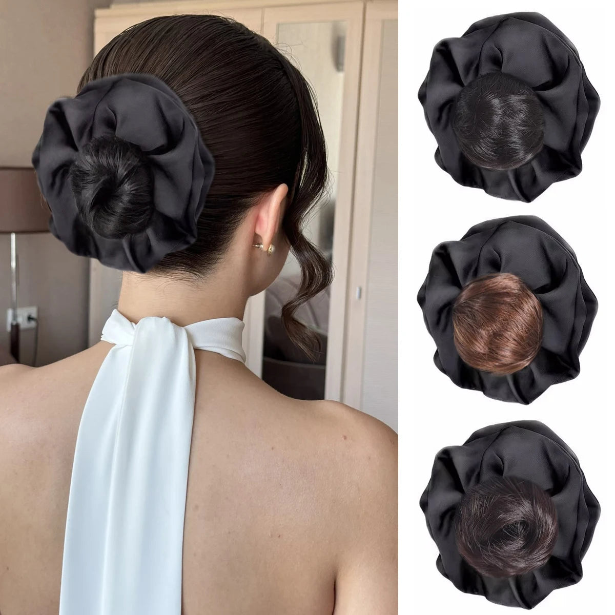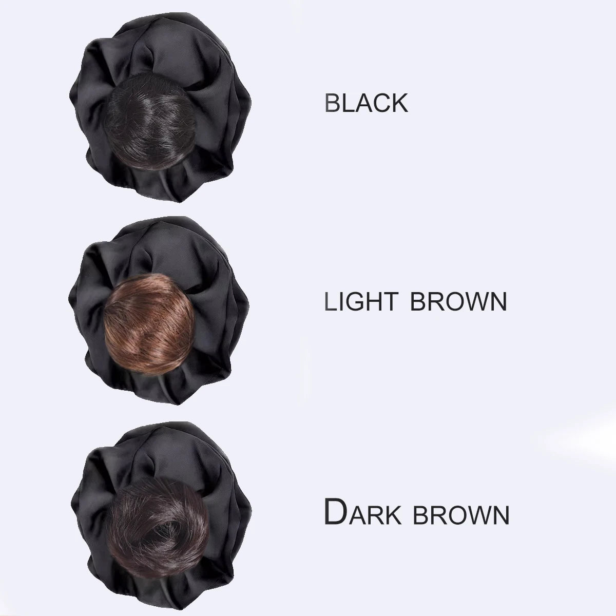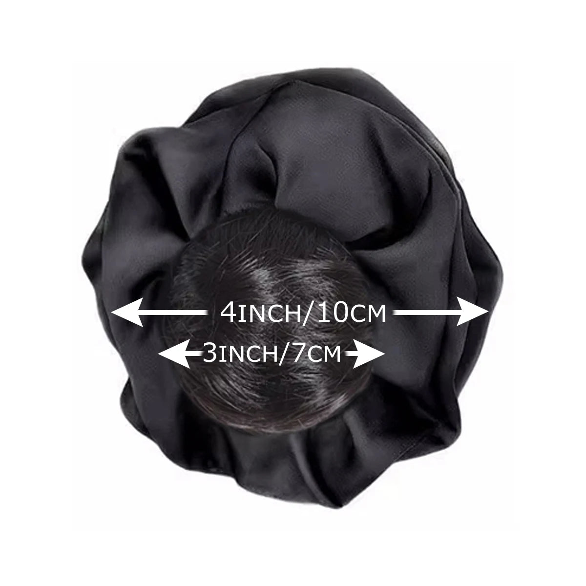 Black Intestine Hair Bun Wig with Clip and Flower Bud
