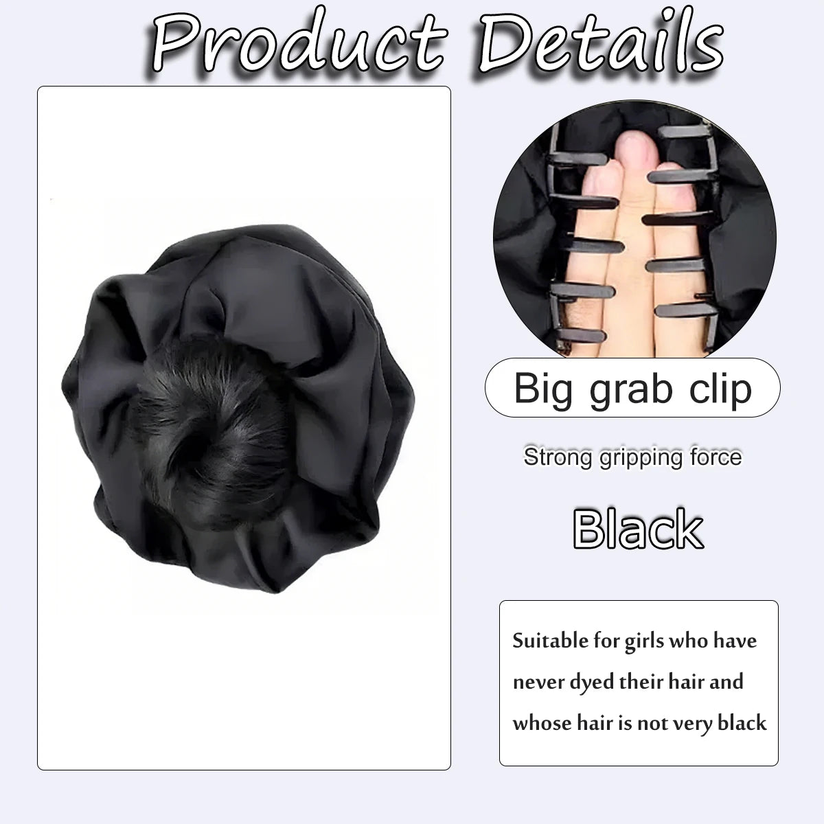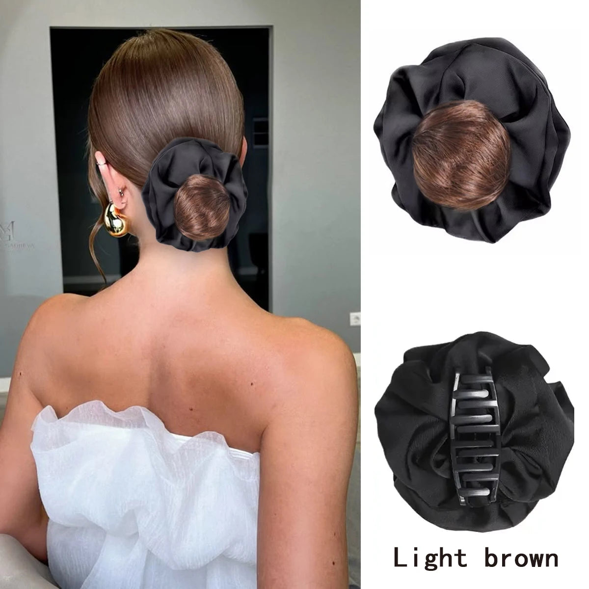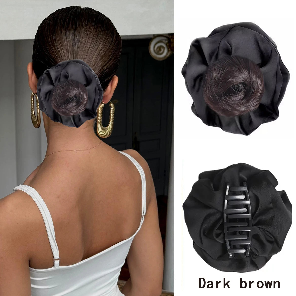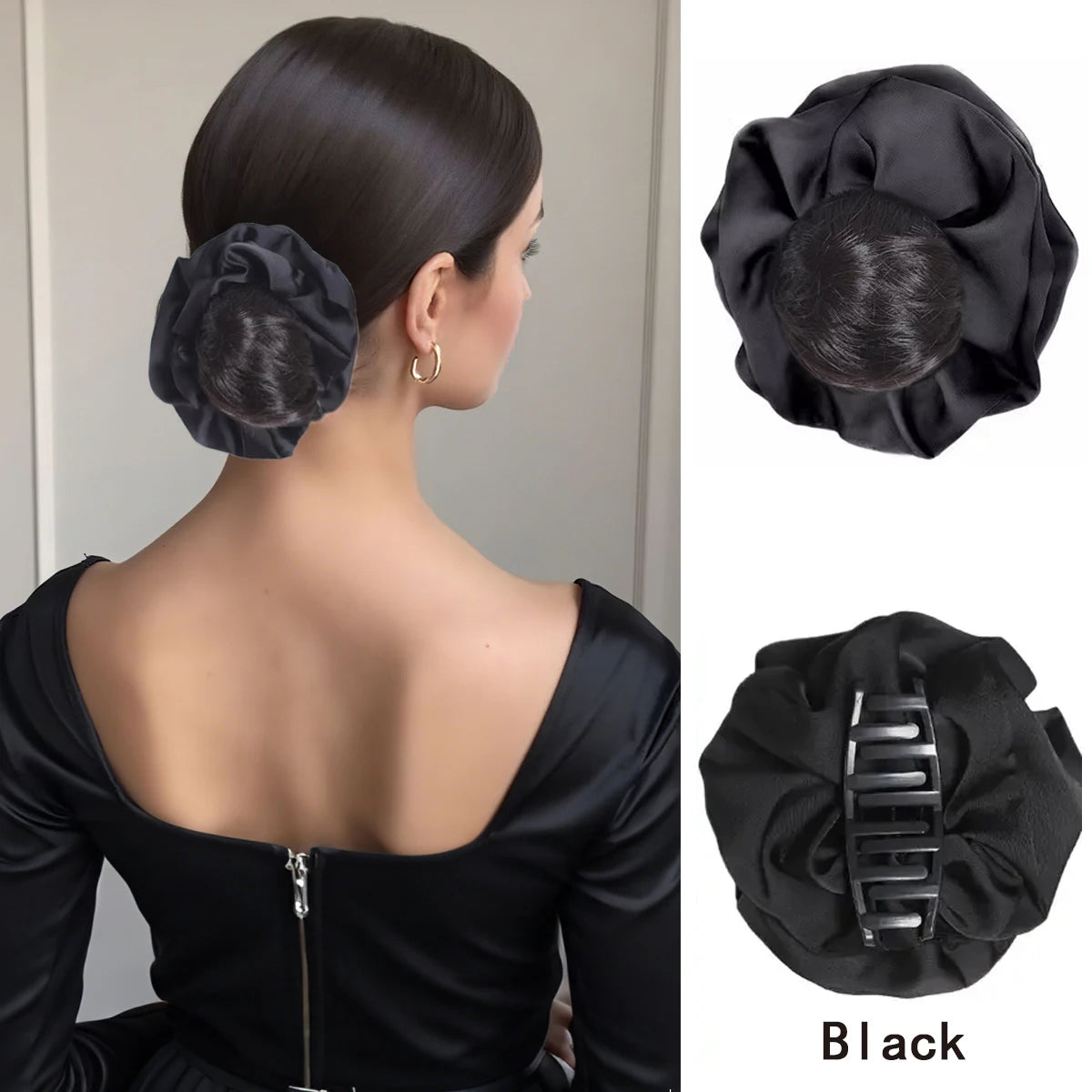 Black Intestine Hair Bun Wig with Clip and Flower Bud
