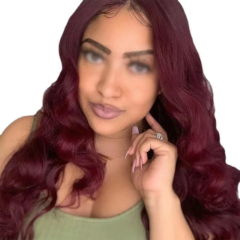 European Wine Red Big Wave Long Curly Wig High Temp Fiber